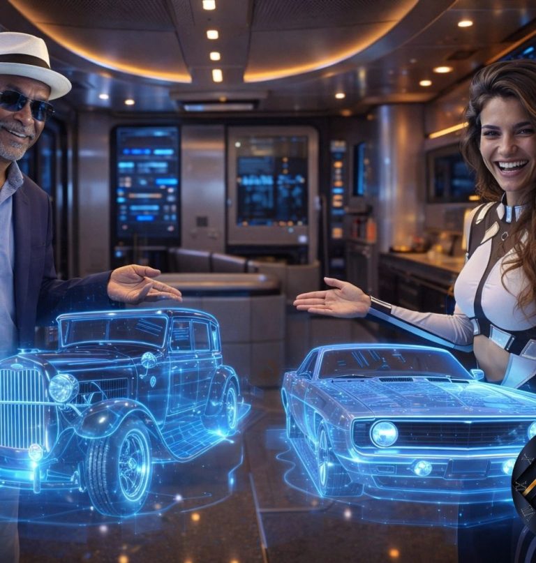 Imagine stepping into the future of the past inside Our Traveling N Time trailer where You can see history coming to life right before Your eyes like You have never seen it before! Larry Hutch is showing off how we blend the classic soul of a 1930s Duesenberg with the high-tech magic of holographic projections and You can feel the energy in the air as the 1969 Camaro glows and floats in front of You making every detail shine with a futuristic spark! This is the kind of sensory-rich journey we are bringing to Your local community where fashion and cars and antiques all collide into one massive celebration of design and craftsmanship